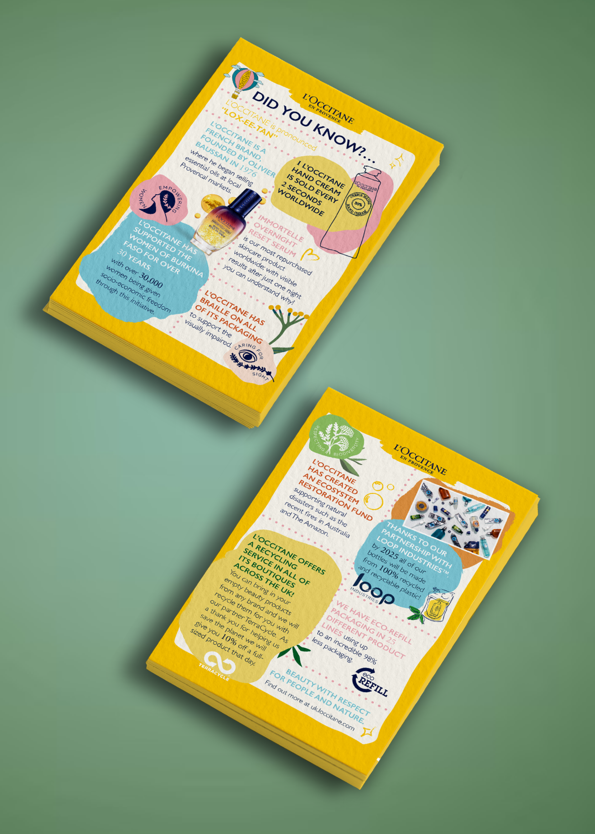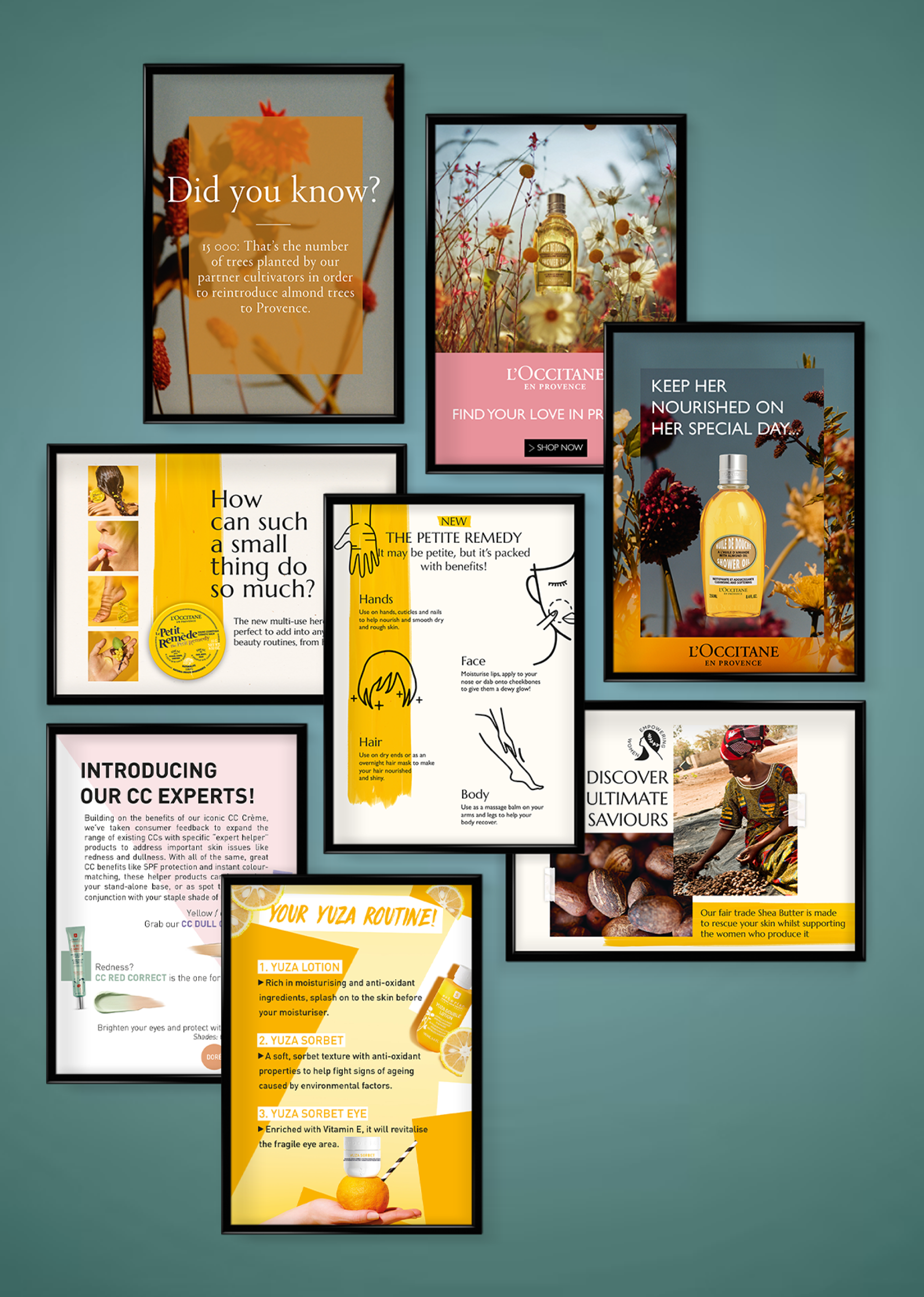 Working In-house at the L’Occitane London Head Office as a member of a very talented and professional Graphic Design team, I was engaged in many projects for various departments such as digital and social media, PR, visual merchandising and wholesale. Working at the L’Occitane Group, also gave me the chance to work for brands such as EL&N Cafe, Eborian, and Elemis. I also created designs for Debenhams and Marks & Spencer who sell L’Occitane products.