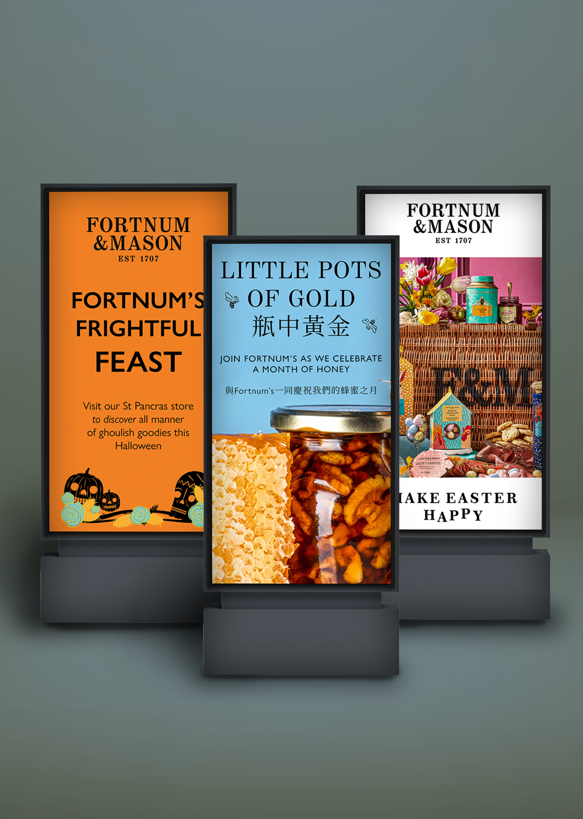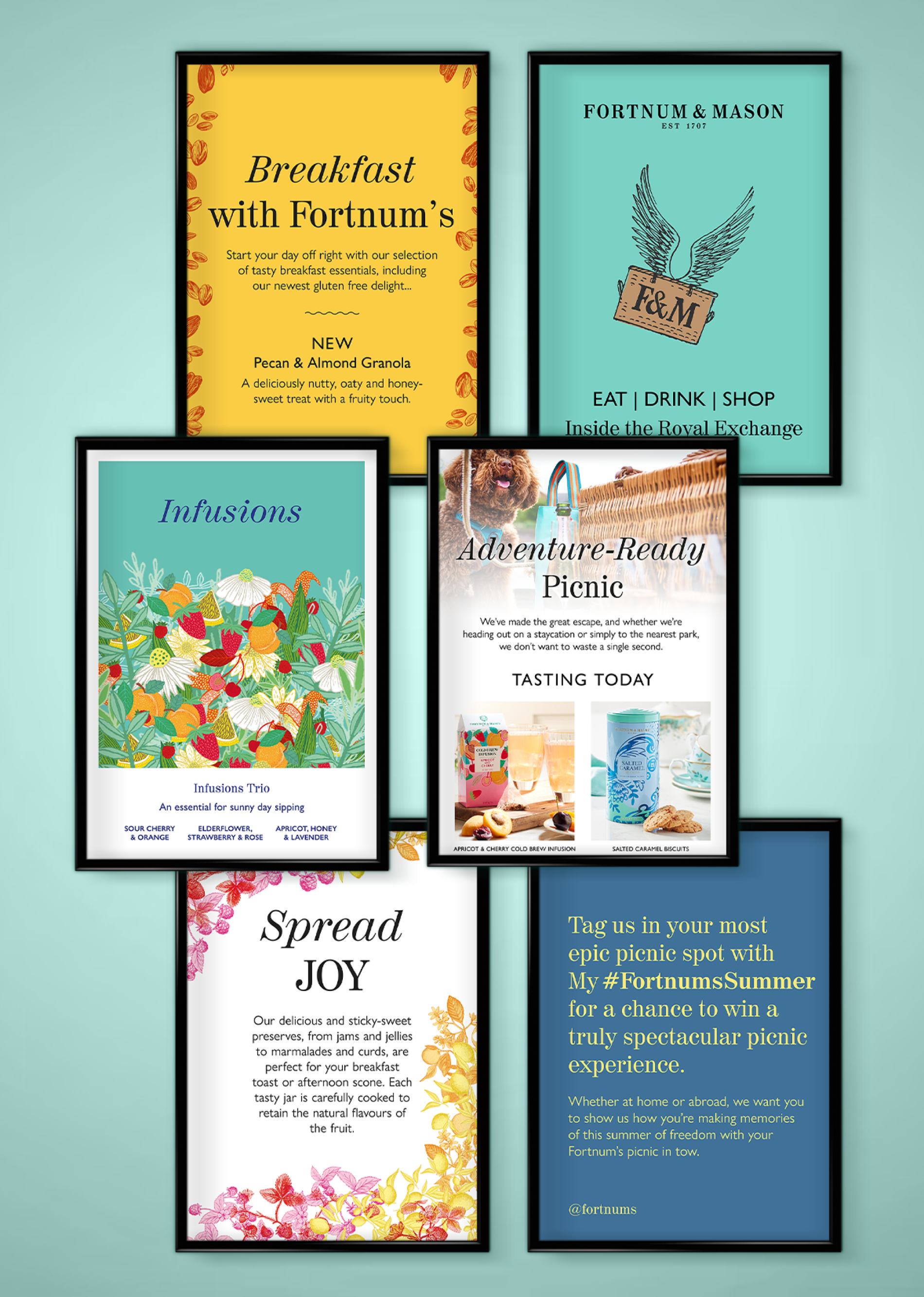 Working in-house as an art worker and graphic designer alongside the marketing and hospitality team. Creating artwork for Fortnum’s flagship store, as well as for their stores at St Pancras Station, The Royal Exchange, Heathrow Terminal 5, Hong Kong and for various events involving Fortnum and Mason. My role involved working closely along side the marketing team, updating and refreshing the shop floor signages, assisting in upcoming campaign ideas and following requests from all departments including, hospitality, visual merchandising, online, international and events.